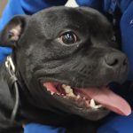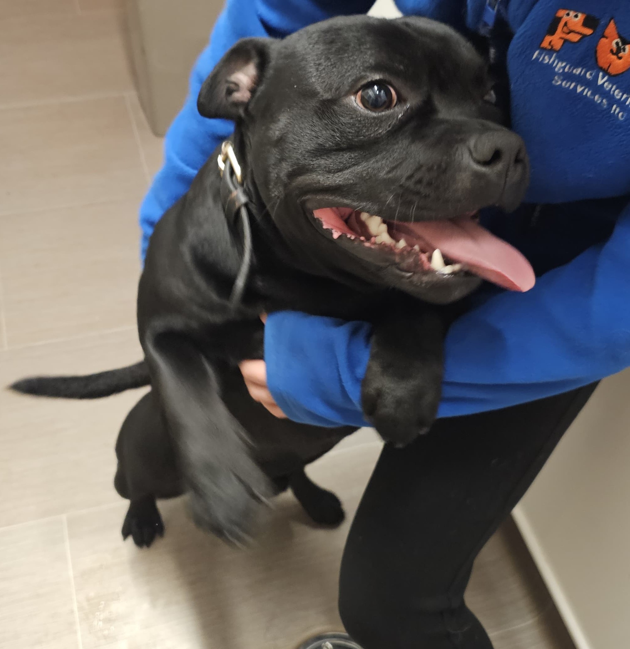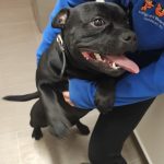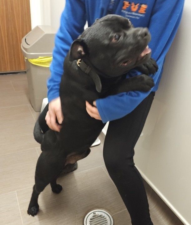 Rolo is a 1yr old Staffie that was taken to our vets to be put to sleep by his owner, as he had “behavioural problems.” Needless to say our vets rang us straight away to see if we could take Rolo. He is a big, strong Staffie & the only behavioural problem we see so far is that he has no manners. He has had very little training &, as he is a very strong boy, he will need someone who will be willing to work on his training. He is house trained & is in a foster home with another dog at the moment, but we feel that he will benefit from being the only dog in the family so that he can have all the attention. He will also require a home with someone home for a lot of the time & has experience of this lively breed.